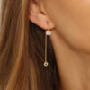 The gold and rhodium-plated finish adds extra brilliance and durability, while the geometric long-drop silhouette enhances your natural grace. Lightweight and refined, they’re ideal for both everyday wear and special occasions like weddings, anniversaries, or evening events.