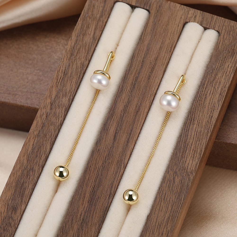 Discover timeless beauty with these Oorbelle Cultured Freshwater Pearl Long Drop Earrings, where elegance meets modern design. Handcrafted from genuine 925 sterling silver and adorned with AAAAA-grade natural freshwater pearls, these earrings radiate sophistication and charm.