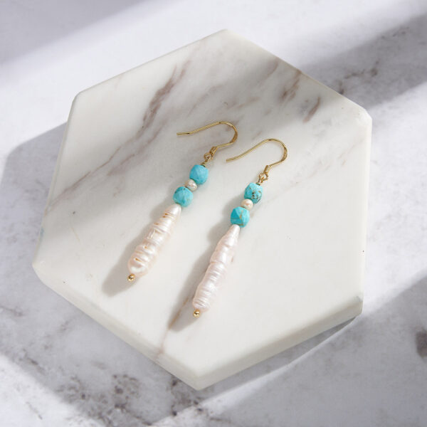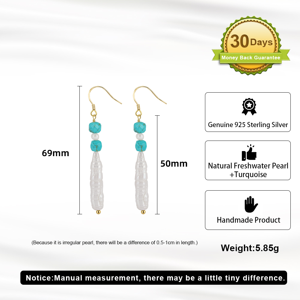 Elevate your jewelry collection with Oorbelle’s exquisite 925 Sterling Silver Turquoise & Freshwater Pearl Drop Earrings. Crafted from premium 92.5% silver and finished with luxurious 14K gold plating, these bohemian-inspired earrings blend natural beauty with timeless sophistication. The genuine turquoise stones add a vibrant pop of blue, beautifully complemented by the natural freshwater pearls that exude a soft, luminous glow. Perfectly balanced in design and weight, these lightweight earrings (5.85g) are comfortable for daily wear or special occasions. Whether you’re dressing up for a wedding, anniversary, or casual outing, their elegant handcrafted charm enhances every look. Certified safe with RoHS and REACH standards, these hypoallergenic earrings are gentle on sensitive skin. A perfect fusion of artisan craftsmanship and modern elegance—ideal as a meaningful gift for women who appreciate authentic, high-quality jewelry.