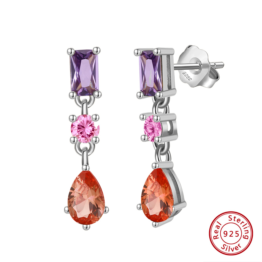 Illuminate your look with the Oorbelle Light Amethyst Teardrop Rectangle Earrings, a radiant blend of modern elegance and artisanal craftsmanship. Expertly handcrafted in genuine 925 Sterling Silver, each earring sparkles with AAAA-grade Cubic Zirconia stones in soft amethyst, pink, and red hues — reflecting a romantic and feminine allure.