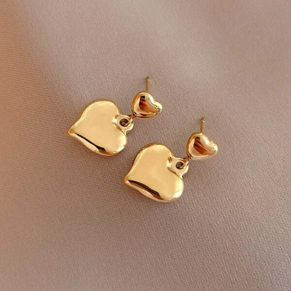 With a design that balances presence and wearability, these heart drop earrings look elegant on the ears while staying comfortable for all-day wear. The smooth, polished surfaces amplify shine and sophistication, making them versatile for casual, date-night, or dressy occasions.